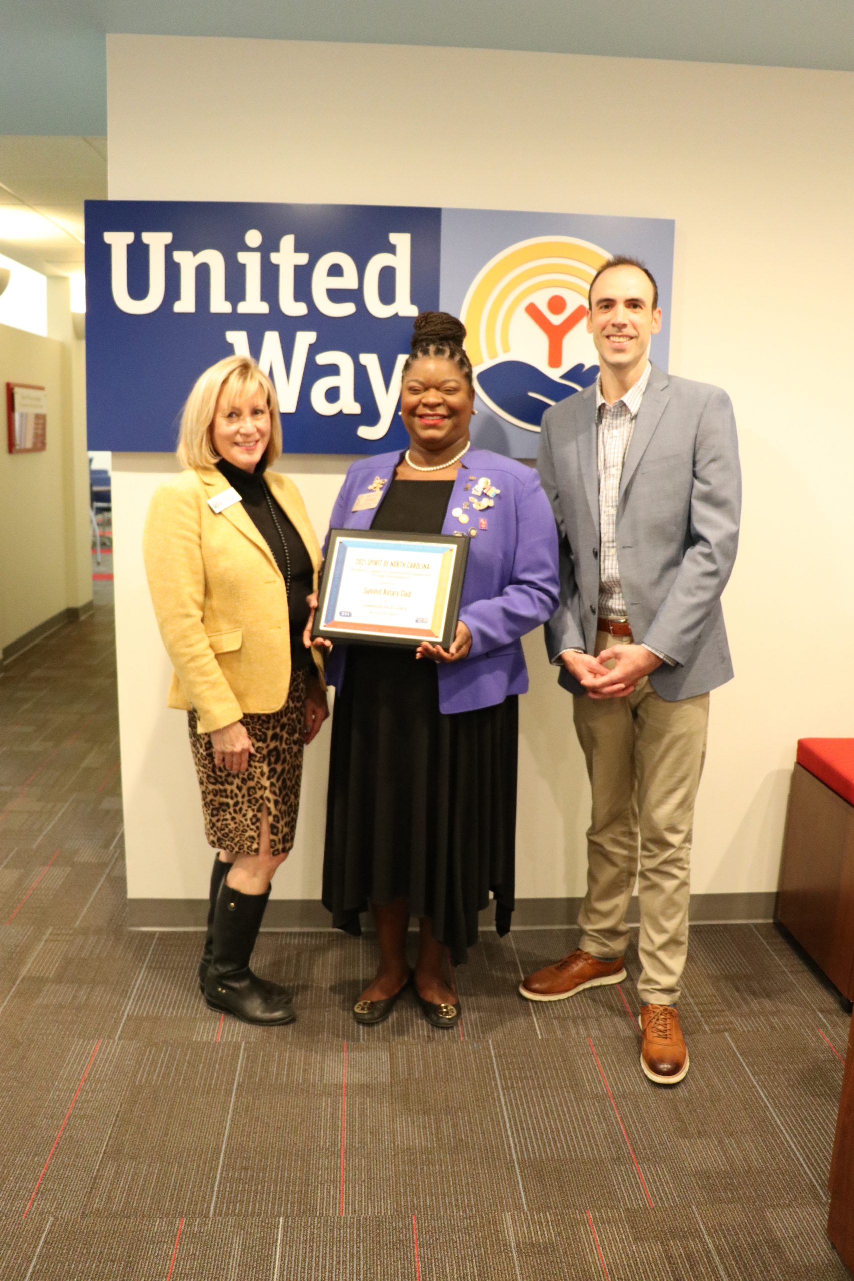 - Summit Rotary Club – The Summit Rotary Club of Greensboro has been a committed partner of United Way of Greater Greensboro for the last ten years. From taking on volunteer leadership positions, to hosting resource drives for families in need, to making significant financial contributions to support United Way Family Success Centers (FSC) and Integrated Service Delivery Network during the pandemic, Summit Rotary has dedicated itself to deep community engagement in the Greensboro community around efforts to end local poverty.